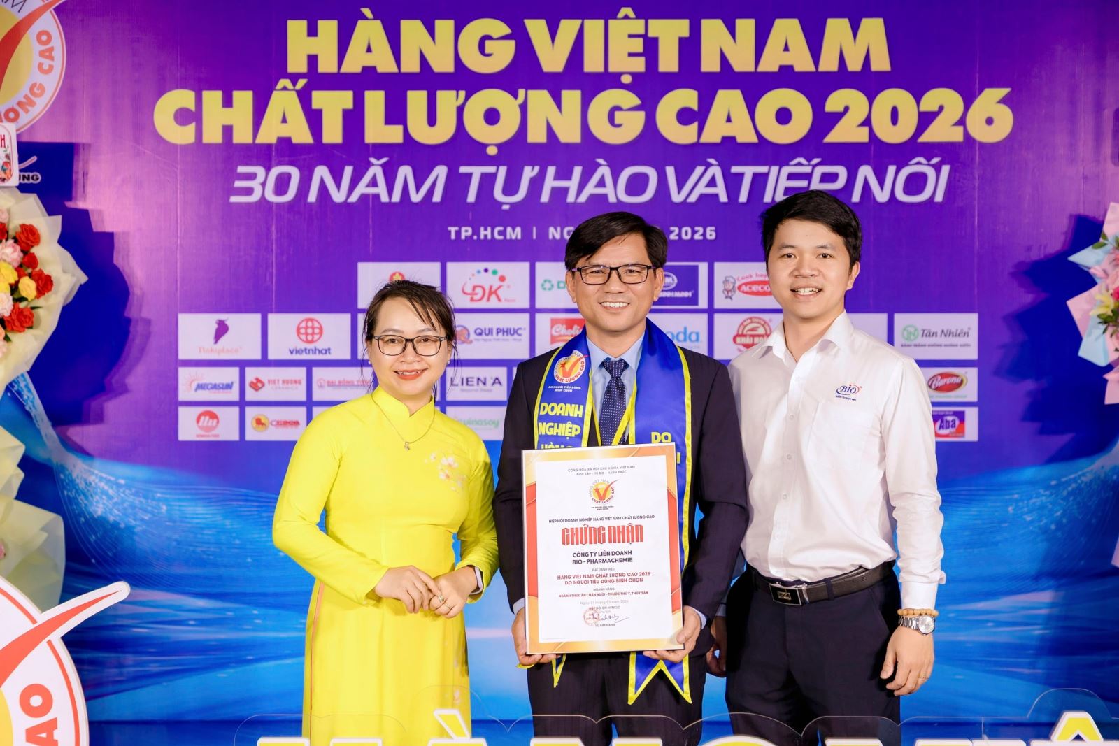 Ngày 31/3/2026, tại Dinh Thống Nhất, TP.HCM, Công ty Liên doanh Bio-Pharmachemie vinh dự được trao tặng chứng nhận “Hàng Việt Nam Chất Lượng Cao 2026 do người tiêu dùng bình chọn”. Đây là chương trình uy tín với sự tham gia của 581 doanh nghiệp, đánh dấu 30 năm hình thành và phát triển, nhằm tôn vinh những thương hiệu uy tín được người tiêu dùng tin tưởng.